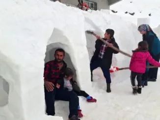 Adıyaman’ın Çelikhan ilçesine bağlı Korucak Köyü’nde birkaç gündür tesirli olan kar yağışıyla bir arada Yasin Bozdemir isimli vatandaş, yakınlarıyla birlikte meskenlerinin önüne kardan oyun alanı ve konut yapmaya başladı. Kazma, kürek, motorlu testere üzere …